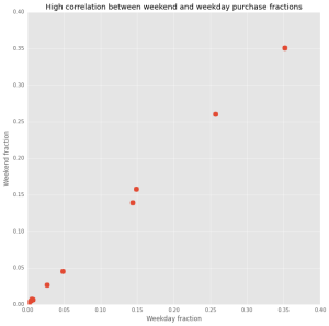 What do we learn from this comparison? Almost nothing. Which is not surprising, as purchasing distribution pattern is mostly determined by factors such as user preferences, demand, price, etc.