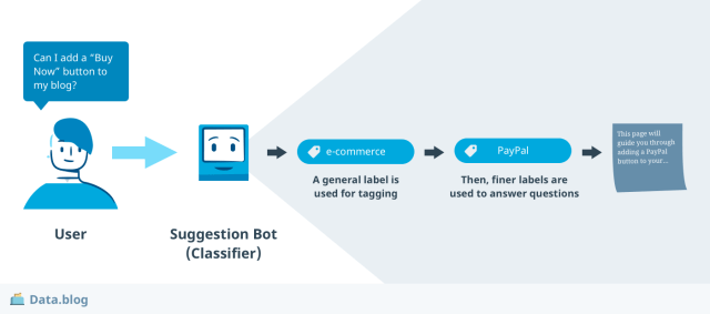 Both of these applications are really about labeling chats. For response suggestions, the label is associated with a response, and since there may be several types of questions related to enabling a blog for e-commerce, we need finer discernment for response classification.