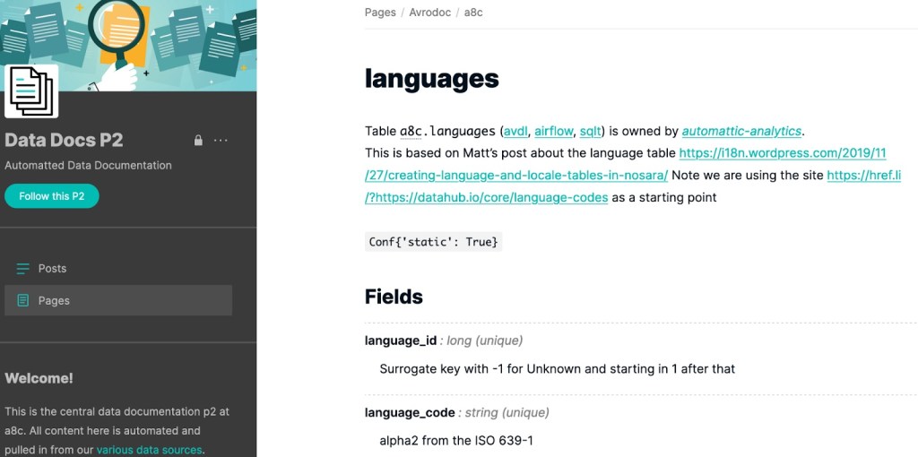 - This is cool! But what about this other data source we use? – In Automattic we consume data from multiple sources. Some datasets are defined in a standardized way (like the table schemas in our Hadoop cluster), but others are less conventional and not available for implementation.