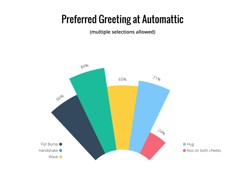 Diversity is essential to Automattic’s culture. As a company with employees from over 100 countries, we believe that embracing different perspectives and backgrounds is key to being creative and productive. Through our different perspectives, we create a happy and safe environment for employees and users. For this reason (and also because it’s right), we strive to build an inclusive environment where everyone feels respected and greeted… the way they prefer it. 😉